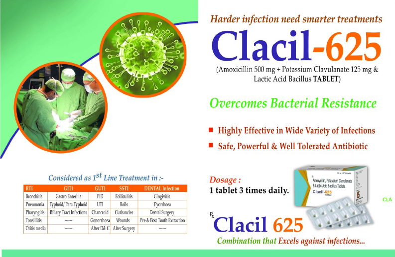 CLACIL-625Tablet has the advantage of having Clavulanic acid, which protects